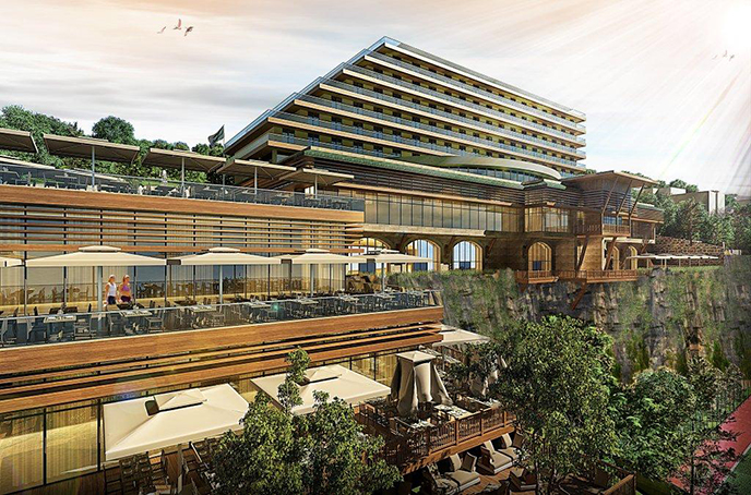 1- Eğimli bir arazi üzerine kurulmakta olan otelimizin her bölümü doğa ve manzaradan maksimum faydayı sağlamaktadır.